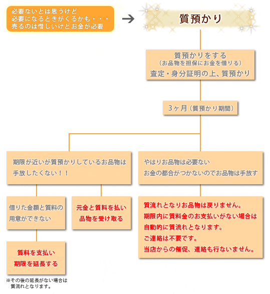 つまり、担保にしたお品物さえ諦めることにしますと取り立てや延滞金も発生しない安心で便利なシステムになります。